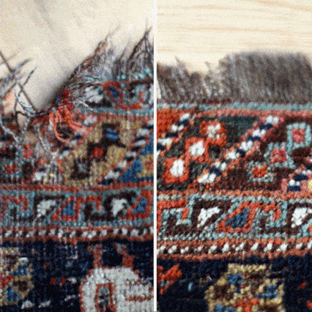 - Reparatur: Technische Ausbesserung, etwa Fransen befestigen oder kleine Löcher schließen. Sinnvoll bei modernen Teppichen oder Alltagsstücken.