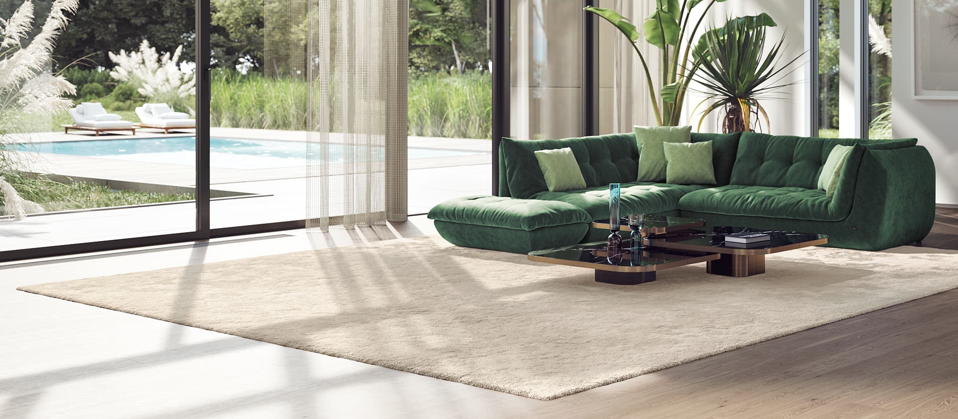 Gefertigt aus nachhaltigen Naturfasern wie Wolle, Sisal, Yak oder Viskose sorgt diese Kollektion für ein gesundes Raumklima und eine natürliche, zeitlose Optik.