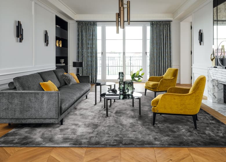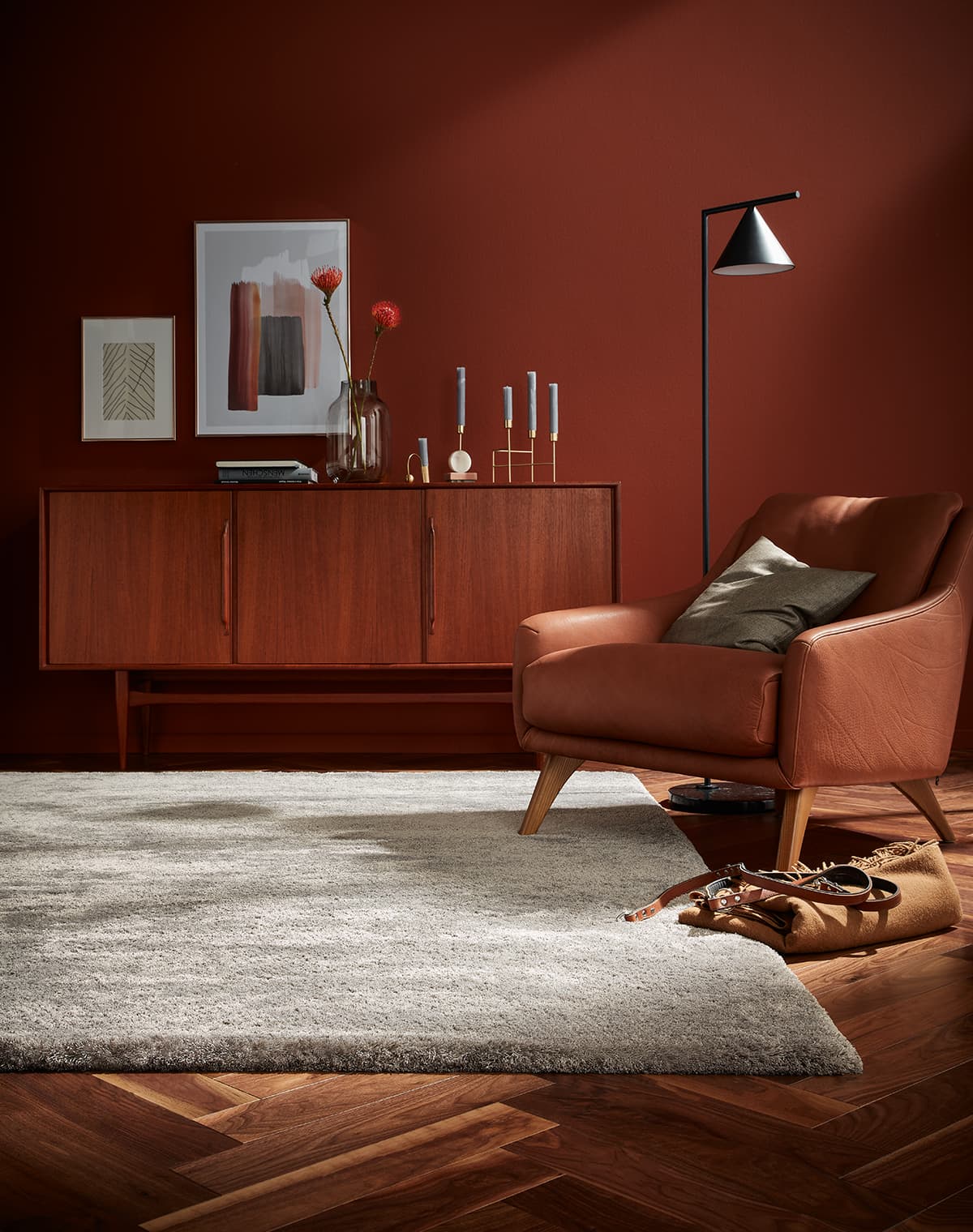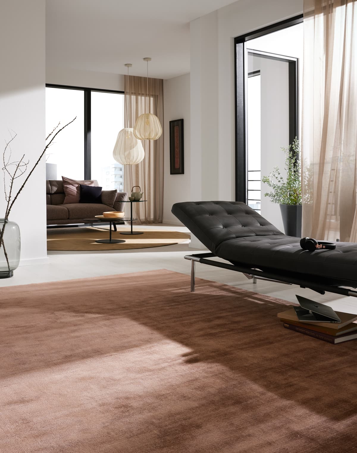 GLAMOUR bietet eine elegante, volltonige Farbigkeit. Die Farbpalette umfasst sieben Nuancen: drei Non-Colours und vier edle, ausdrucksstarke Töne. Moosgrün, Messing, Ozeanblau und Rostrot transportieren die elegante Viskose-Optik in idealer Weise. Die hochwertigen Teppiche verleihen Räumen eine besondere Tiefe. In der Flächenwirkung vermitteln sie Behaglichkeit und Opulenz.