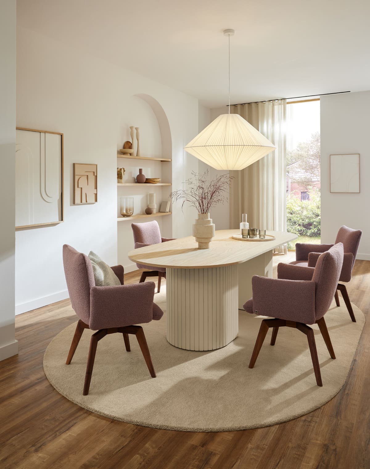 Helle, freundliche Räume schaffen eine Atmosphäre, die uns und unsere Liebsten zu jeder Tageszeit willkommen heißt. Um Gespräche zu führen oder einfach nur um gemeinsam da zu sein. An exquisiten Stoffen und einladenden Flächen mangelt es ganz sicher nicht.