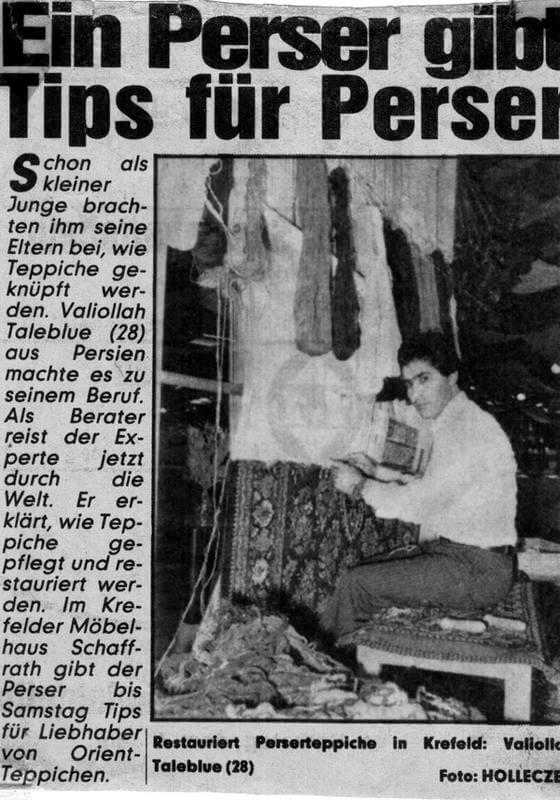 In den frühen 70er-Jahren kam mein Vater, Valiollah Taleblou, nach Berlin. Schnell machte er sich einen Namen als Teppichhändler und Restaurator. Fachleute aus der ganzen Branche – sogar Gutachter – suchten seinen Rat, wenn sie unsicher waren. Und es blieb nicht bei Fragen zur Echtheit oder Herkunft. Auch wenn es um Reparaturen oder schwierige Restaurierungen ging, kamen Fachleute zu ihm. Der Unterschied ist entscheidend: Reparieren kann man viel – Fransen ersetzen, Löcher flicken, Kanten sichern. Doch Restaurieren bedeutet, einen Teppich in seinen ursprünglichen Zustand zurückzuführen, originalgetreu, sodass die Arbeit unsichtbar bleibt. Genau darin lag die große Kunst meines Vaters.